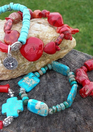 Bracelets, necklaces, Earrings, and more are made individually. No two pieces are alike.